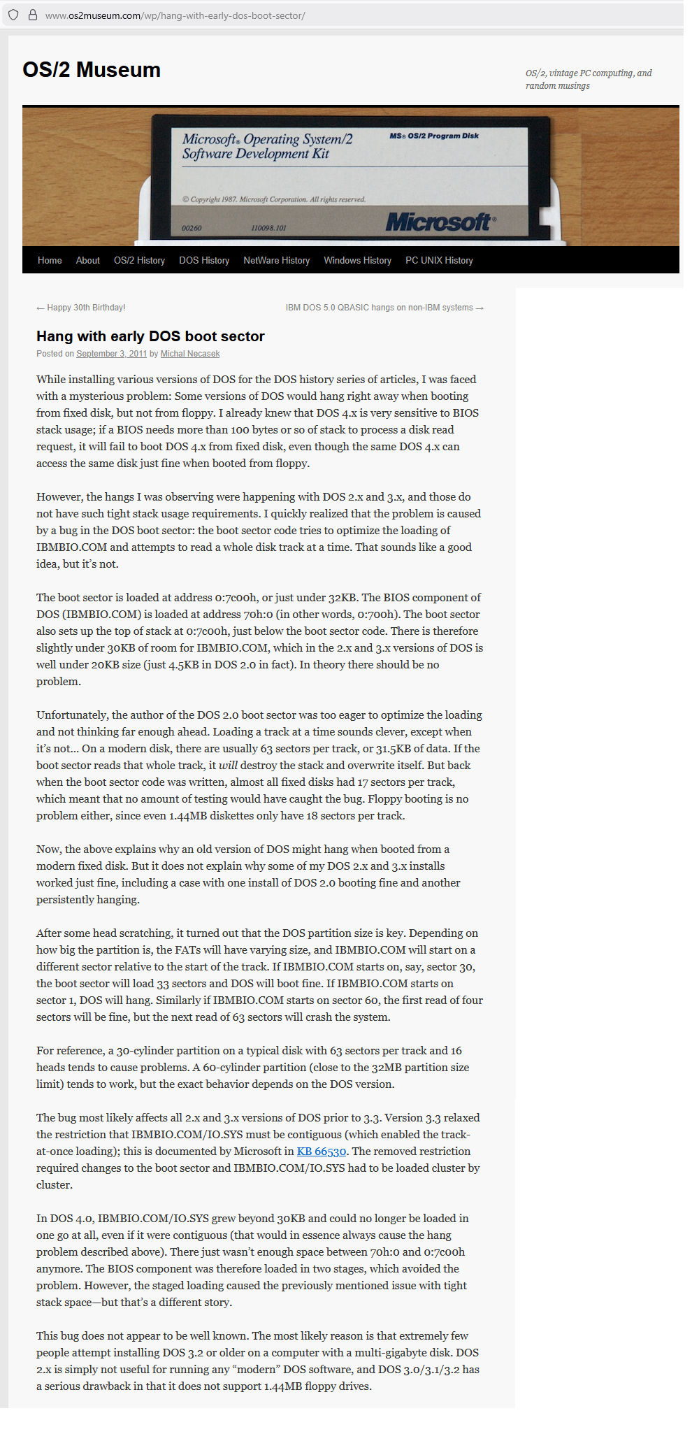 | Hang with early DOS boot sector |